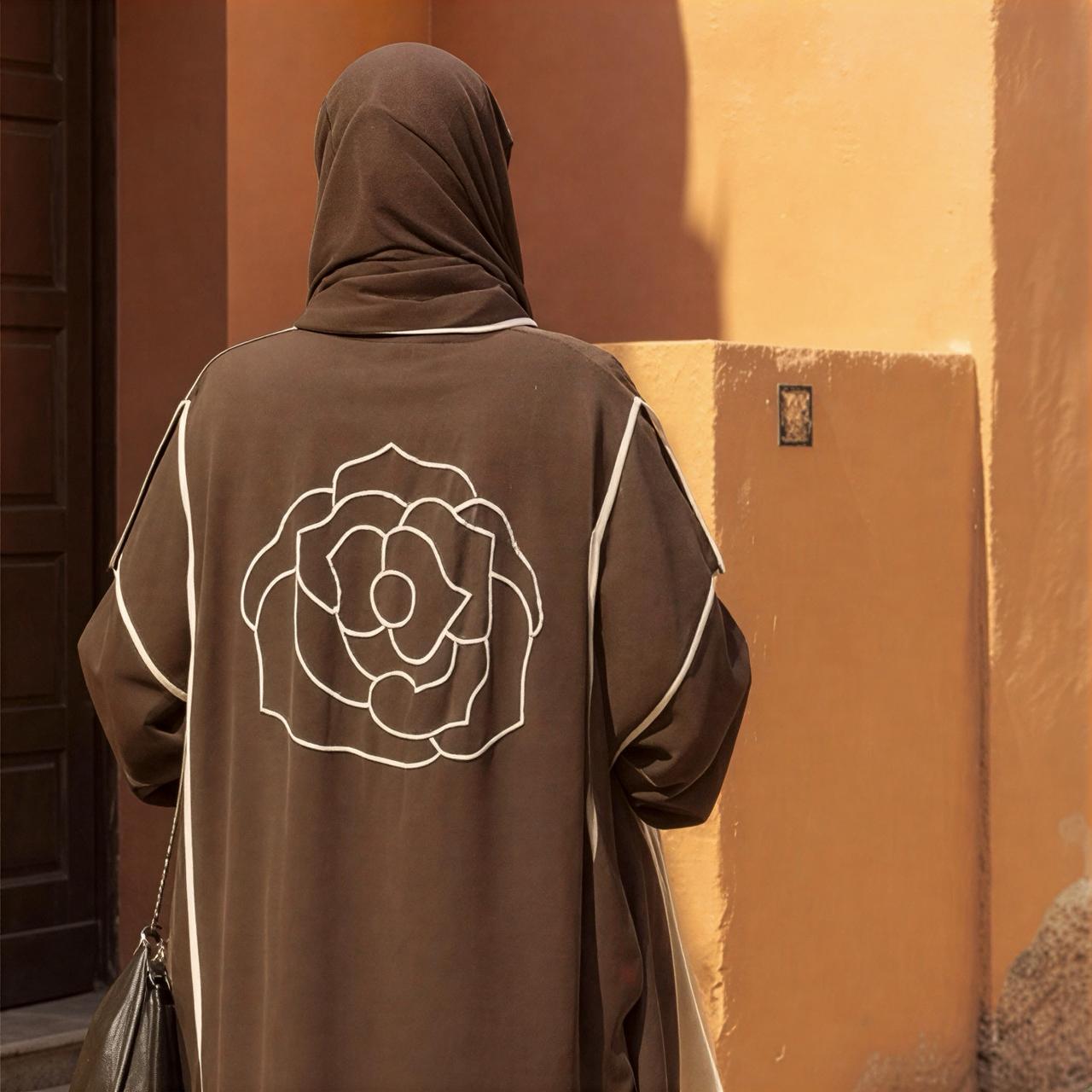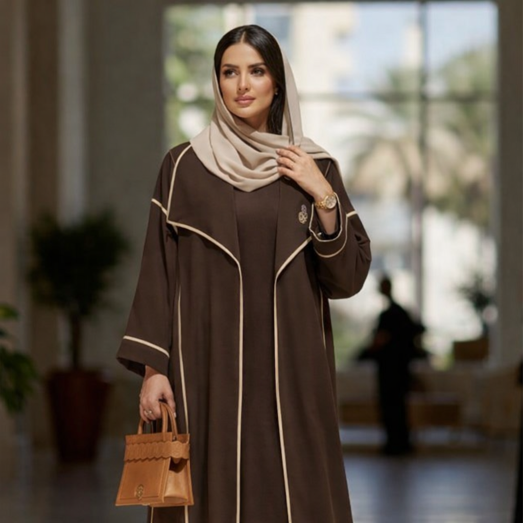 بني غامق بخطوط وزخرفة باللون البيج