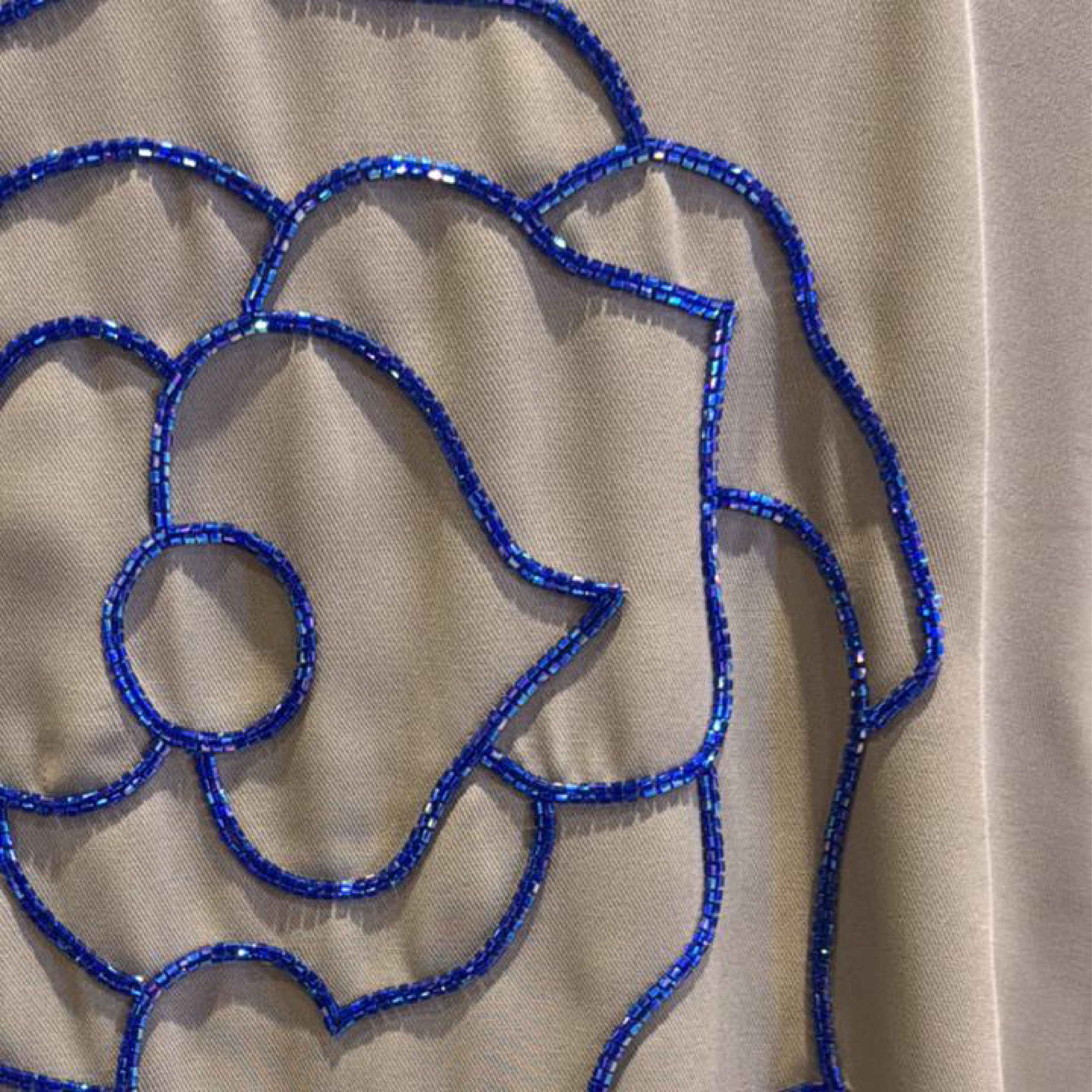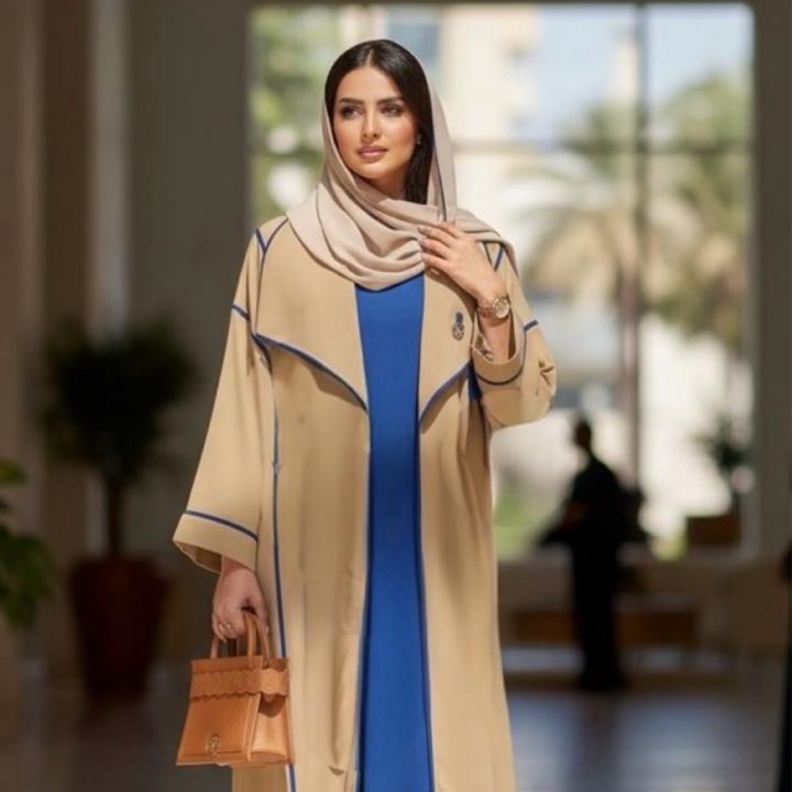 بيج بخطوط وزخرفة باللون الأزرق