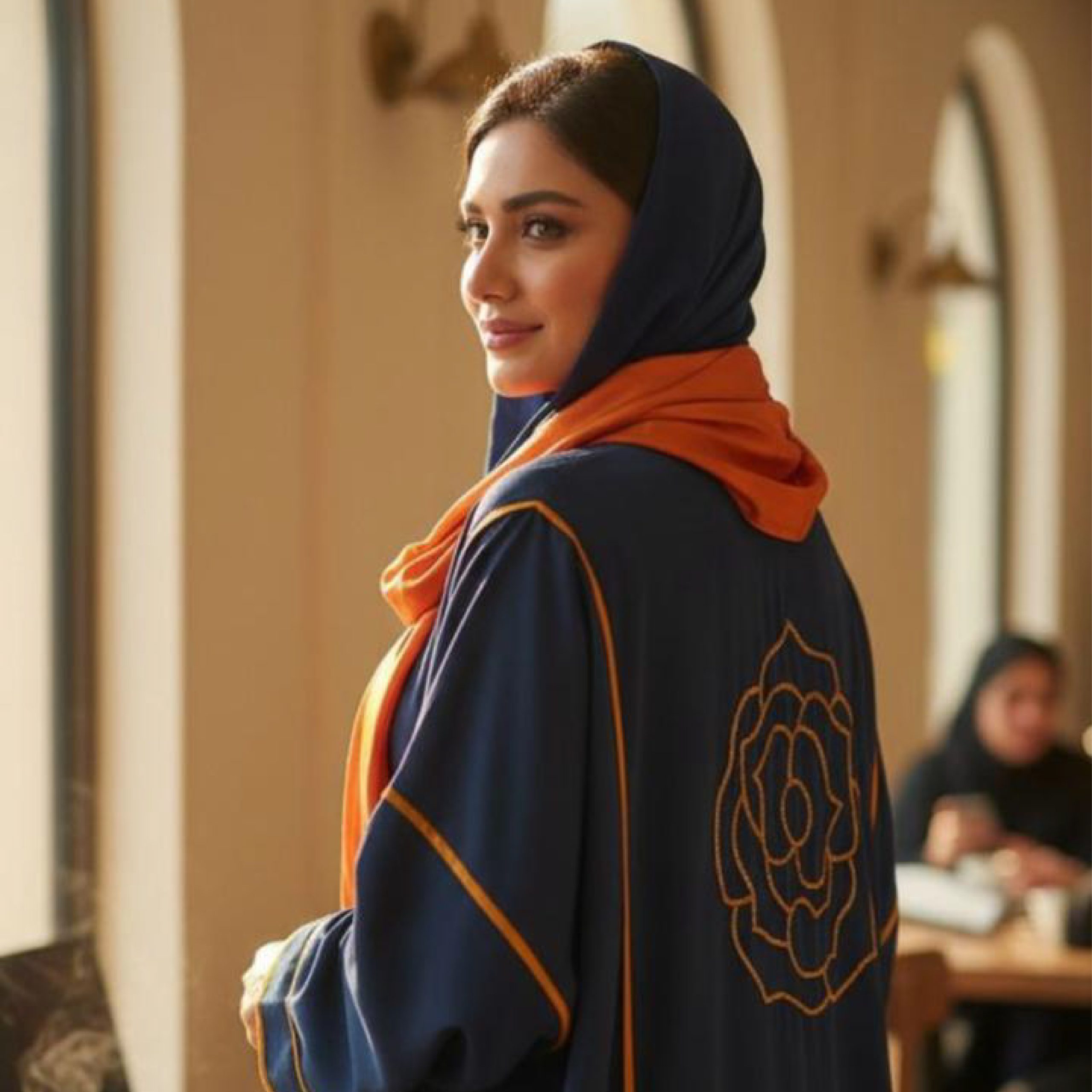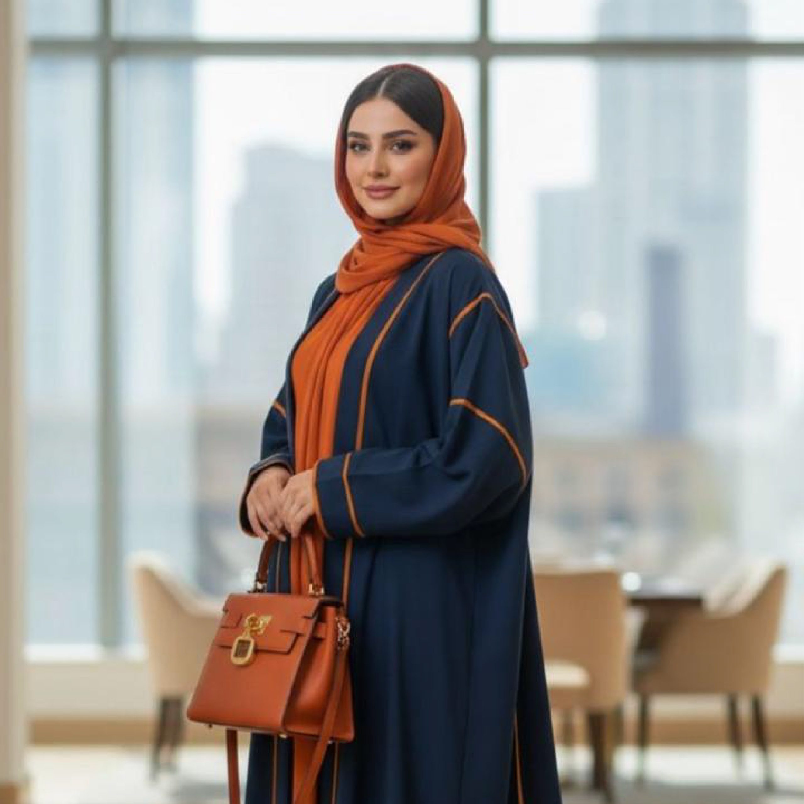 كحلي بخطوط وزخرفة باللون البرتقالي